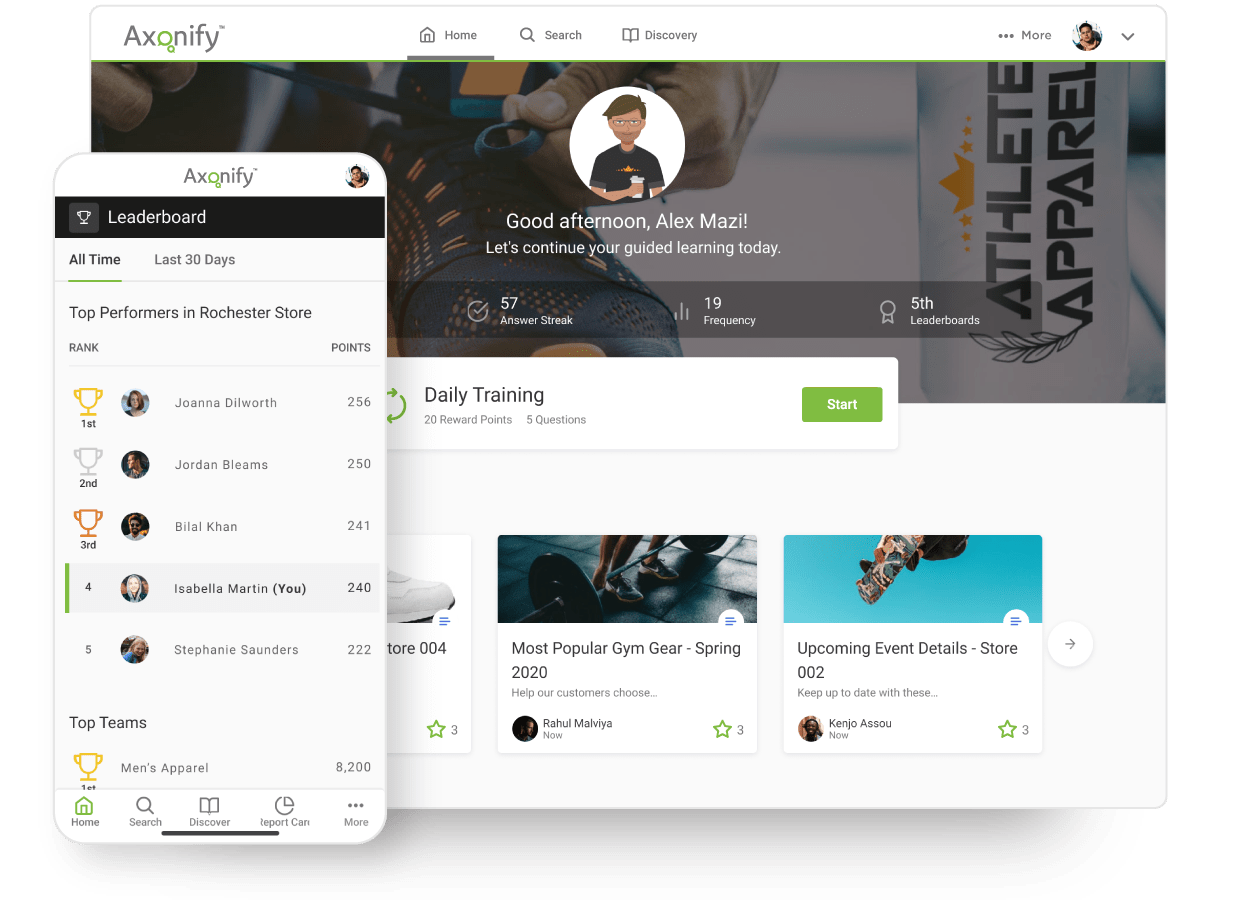 preporuka imati vidljive liste vodećih korisnika i timova na temelju kojih će